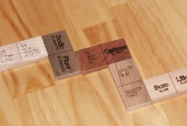 Set de 94 fichas de madera nativa pirograbadas, diseñado para facilitar el estudio escolar de la anatomía y fisiología del cuerpo humano.