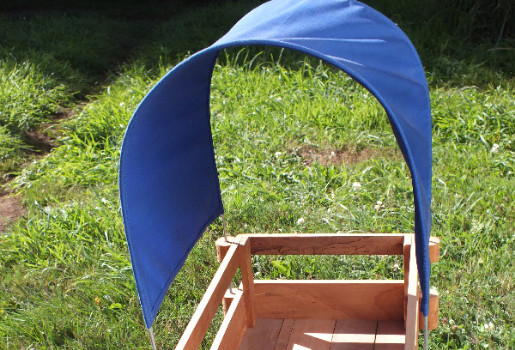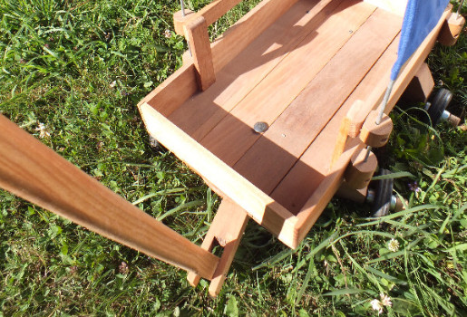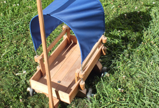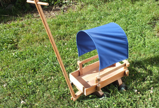 Carreta de arrastre de madera nativa con toldo de género, de 60 cm de largo aprox.