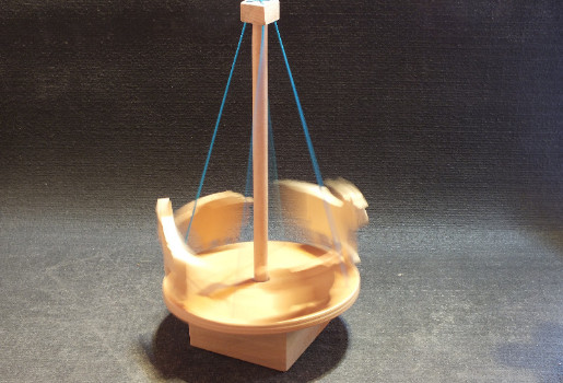Carrusel de madera que gira y se mantiene girando por inercia.