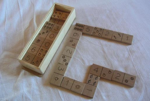 En lugar de los tradicionales puntos que se usan para indicar las cantidades que se emparejan, este dominó usa números del 0 al 6 y conjuntos de figuras distintas, de modo tal que el niño no se base sólo en la igualdad visual para realizar el emparejamiento, sino que aprenda a relacionar un conjunto de objetos con un signo numérico.