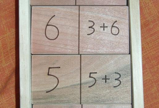 Se juega como el dominó tradicional, pero los números van del 3 al 9 y están representados tanto por su cifra como por operaciones simples de suma con números de un dígito.