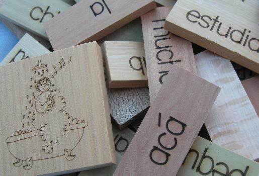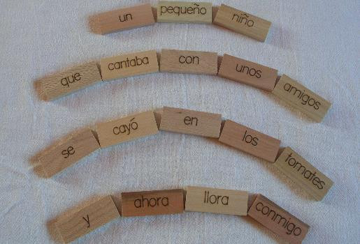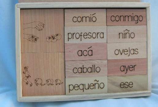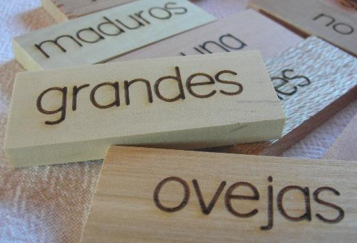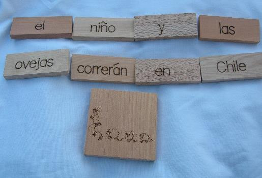 Juego de 80 fichas de madera nativa pirograbada diseñado para que el niño de enseñanza básica forme oraciones largas, juntando palabras de las distintas categorías gramaticales. La variedad de palabras está pensada para que el niño maneje correctamente la concordancia y la adecuación semántica.